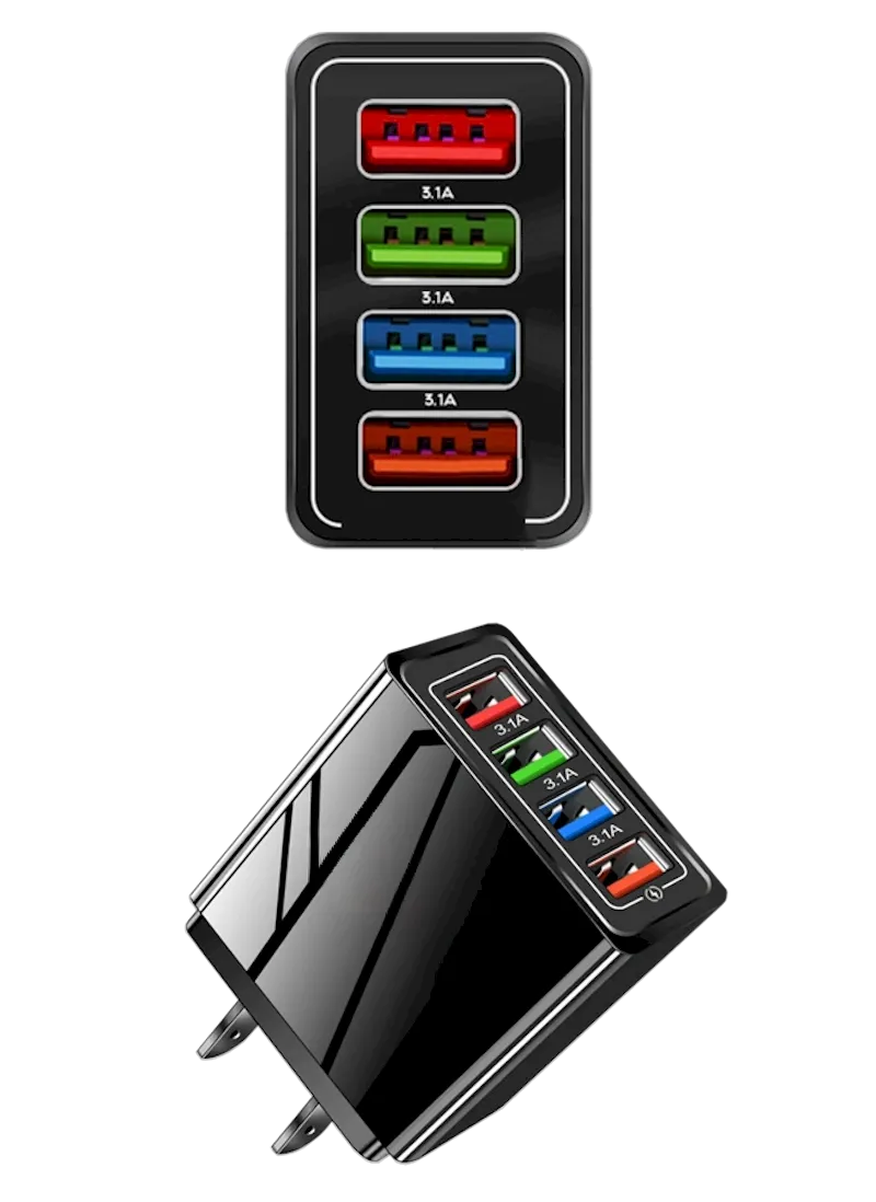 - Charges up to 4 devices simultaneously